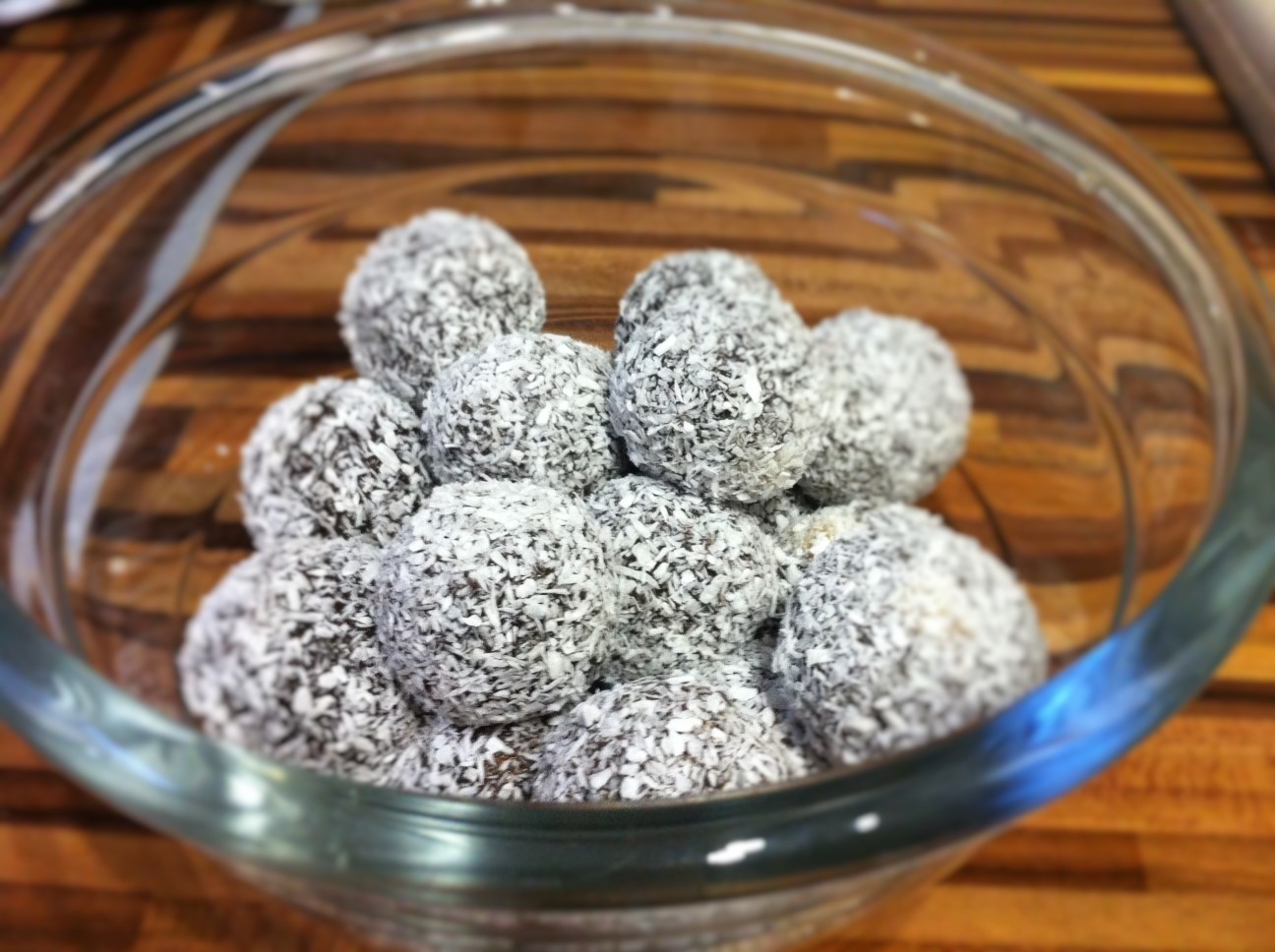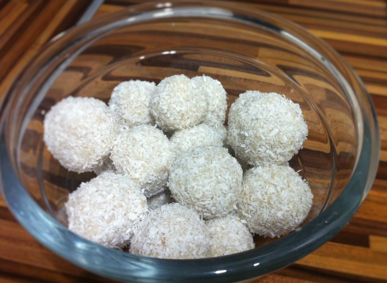 Se omogenizează conținutul (putem adăuga puțin lapte de soia, dacă simțim că este cazul pentru a îngloba ingredientele). Pentru un aport de dulce, putem adăuga și puțină miere. Deși, pentru copii, nu este cazul să cultivăm un gust puternic dulce și să ținem cont de fapul că mierea are o putere de îndulcire mult mai mare decât zahărul și poate avea același efect de hiperactivitate, dacă este folosită în exces. Împărțim în cantități de mărimea unei nuci mai mici cu ajutorul unei linguri și tăvălim prin nucă de cocos sau prin semințe de cânepă.