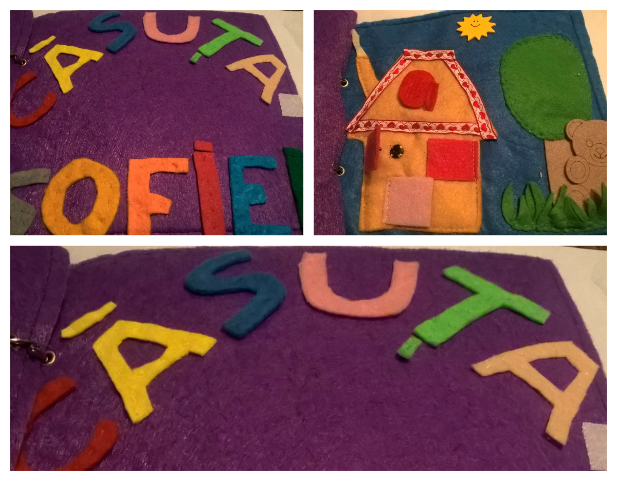 La un an și cinci luni, Sofia este un copil extrem de activ, tot timpul în mișcare, în acțiune și foarte puțin aplecată către activitățile statice. De aceea, am ales să comandăm o așa numită – Quiet Book/Carte de activități/Carte senzorială pentru a echilibra spectrul ei de activități. Parte din procesul educațional al Soficăi este și modul în care achiziționăm ceva – cine este producătorul, de unde, ce anume, care este scopul. I-am exemplificat de data aceasta achiziționând o carte lucrată manual pentru a sprijini creatorul să continue activitatea pe noul drum profesional, un drum mai util minții, sufletului și evoluției. Vreau să fie un schimb echitabil cumpărător-vânzător, nu-mi doresc să profităm de pe urma cuiva, așa cum nu-mi doresc să se profite de noi. Așadar, am încercat să plătesc atât cât să-i fie respectată munca, dar să ne putem și permite. Mai mult, mi-am dorit ca scopul comun al acestui obiect să fie dezvoltarea Soficăi, nu pe deoparte profitul, iar pe de alta ceva s-o țină ocupată. Un alt plan al nostru este de a crea împreună noi pagini și a le adăuga treptat cărții.