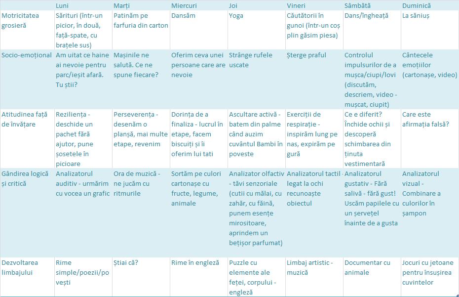 Ada, sunt foarte inspirationale articolele tale! Recunosc ca ma inspir din ele in activitatile cu fetita si iti multumesc pentru asta! Iar tabelul cu activitatile zilnice este minunat, mai ales ca multe dintre ele sunt activitati domestice, regulate. Dar am o intrebare: cam de la ce varsta a inceput Sofia sa participe activ la ele si sa aiba si rabdare? Noi practicam cu Ema diferite jocuri casnice insa sare foarte repede de la o activitate la alta si nu prea are rabdare.. Te pup cu drag